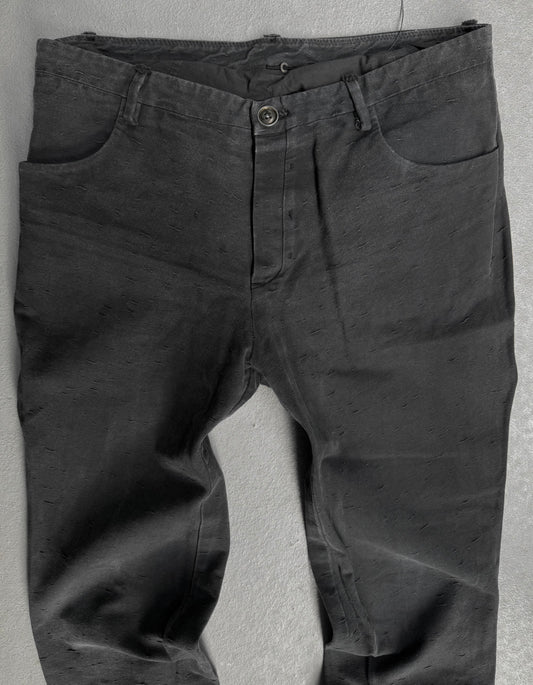 Rick Owens AW08 "STAG" Twisted Seam Frayed Hem Flare Wool Trousers
