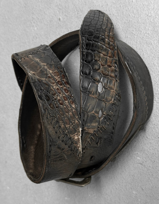 14thAddiction Early 00s Scar-stitch Crocodile Leather Belt