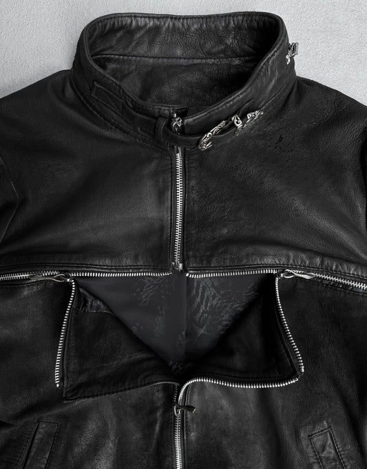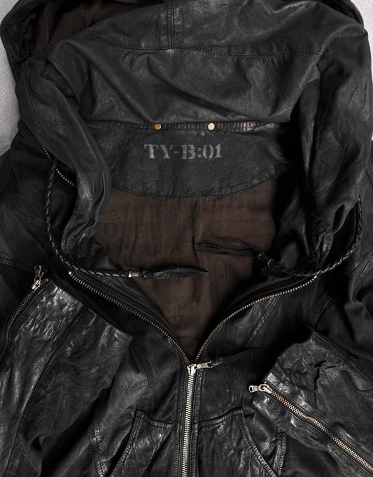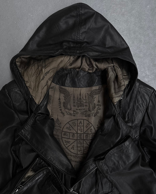 14thAddiction Early 00s Hooded Lambskin Leather Rider Jacket