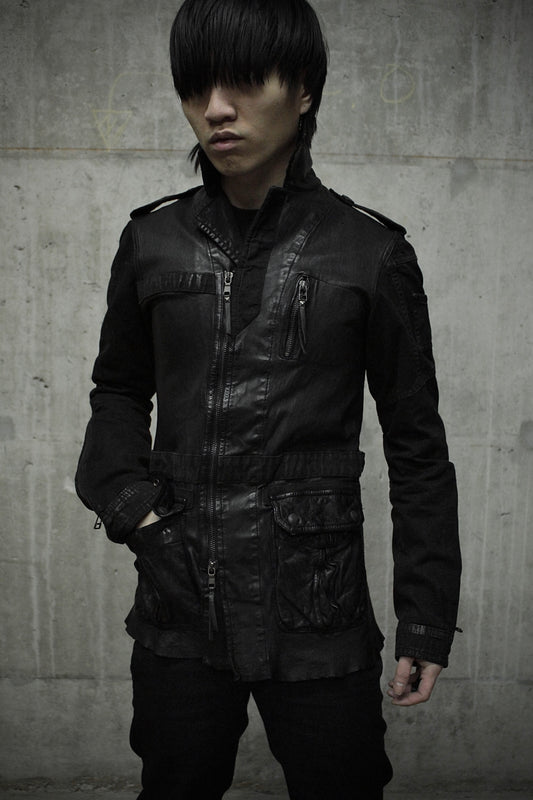 14thAddiction Early 00s Hybrid Goat Leather Waxed Denim Field Jacket