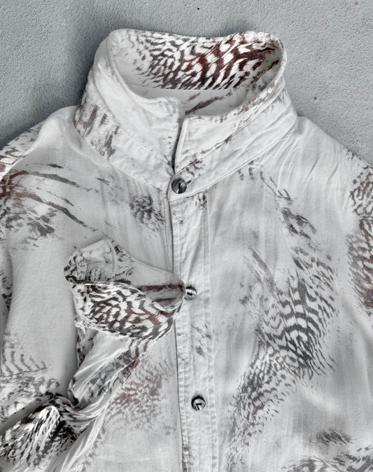 14thAddiction Early 00s Feather Print Button-up Shirt