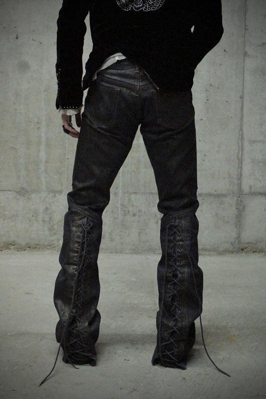 5351 Pour Les Hommes Early 00s Gold Finished Corset Lace Boot Cut Denim
