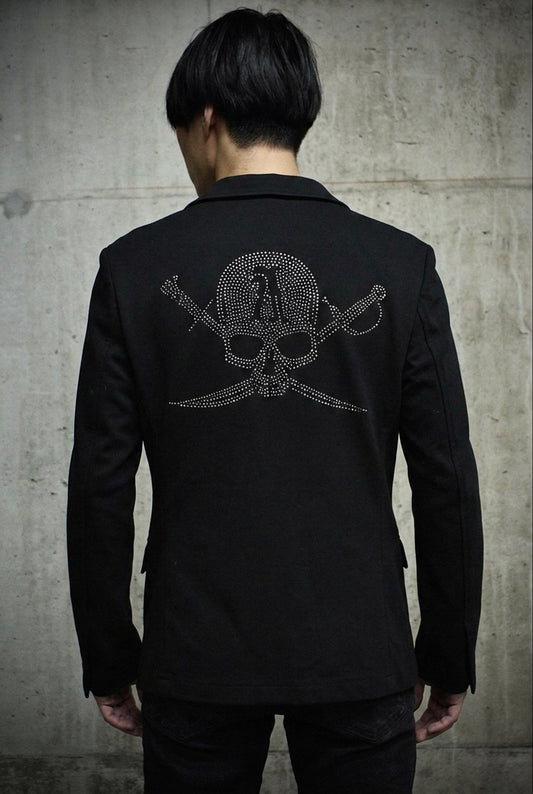 ABORDAGE Early 00s Rhinestone Skull Embellished Peak Lapel Blazer