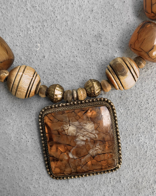 G.O.A Early 00s Wooden Hand-beaded Gem Stones Tribal Necklace