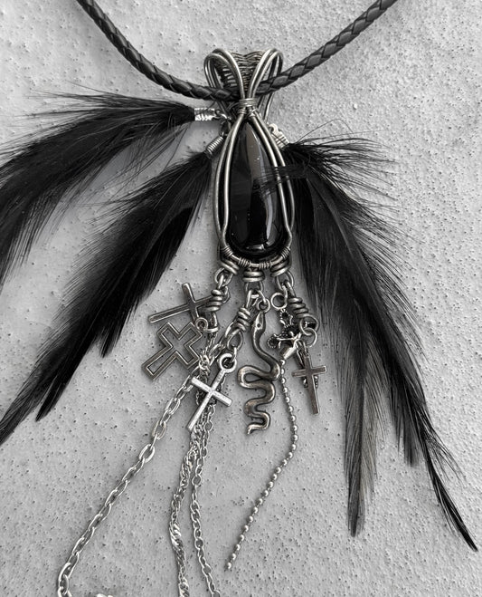 Sold outVY001 Custom “NOIR” Feather Necklace
