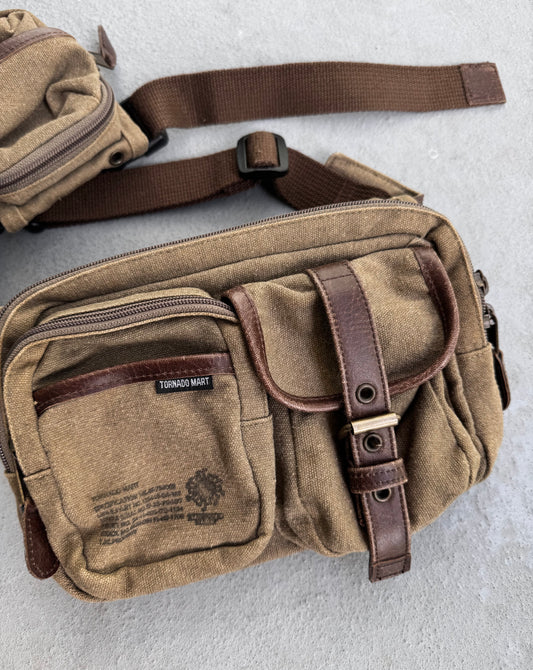 Tornado Mart Early 00s Safari Brown Khaki Cotton Waistbag