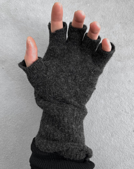 Number (N)ine Early 00s Fingerless Grey Wool Gloves