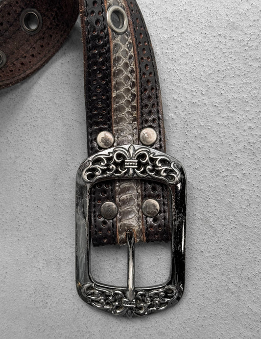 Tornado Mart Early 00s Python Skin ‘Fleur’ Engraved Western Belt