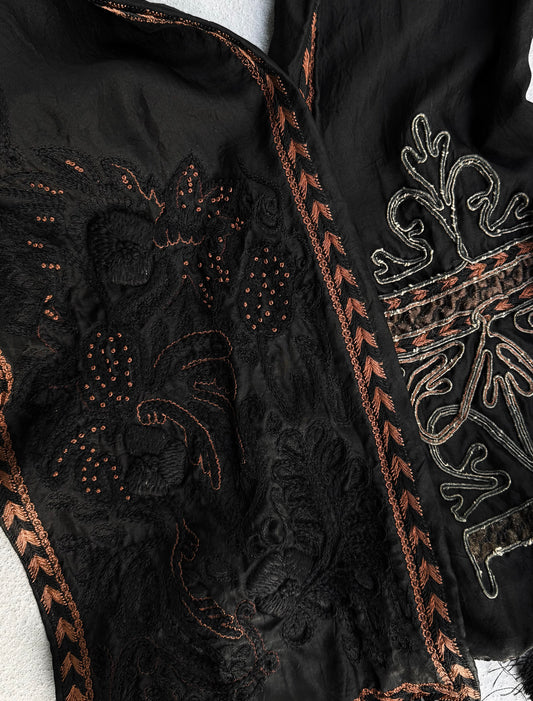 Dries Van Noten Embroidered Frayed Silk Scarf