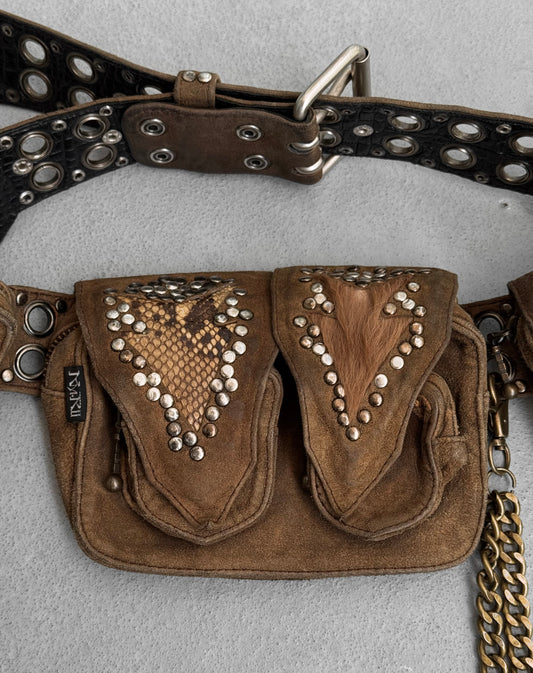 KMRii Early 00s “Wildside” Exotic Brown Calfskin Suede Leather Waist-bag