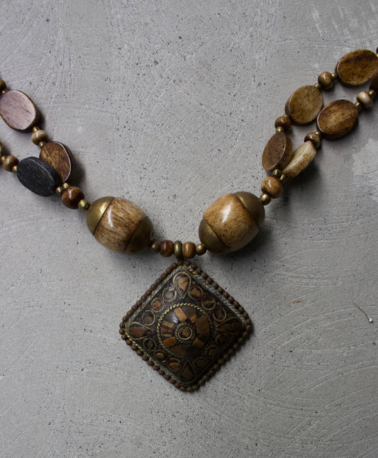 G.O.A Early 00s Beaded Wooden Pendant Necklace