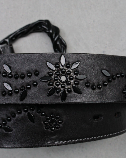 Tornado Mart Early 00s Western Buckle Floral Studded Leather Belt