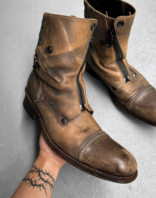 alfredoBANNISTER Early 00s Asymmetrical Zip Leather Combat Boots