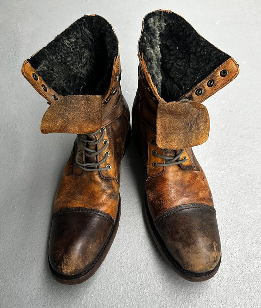 alfredoBANNISTER Early 00s Shearling Foldable Leather Strap Boots