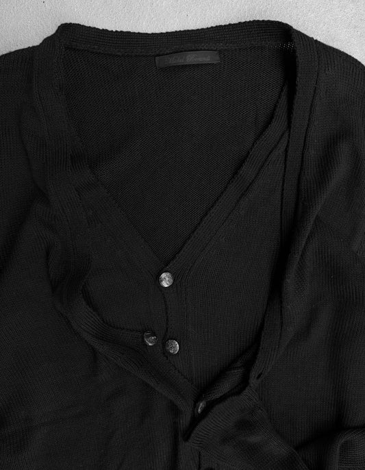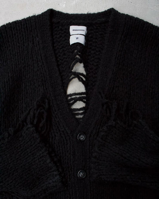 Mihara Yasuhiro AW10 Distressed Black Wool-Knit Cardigan