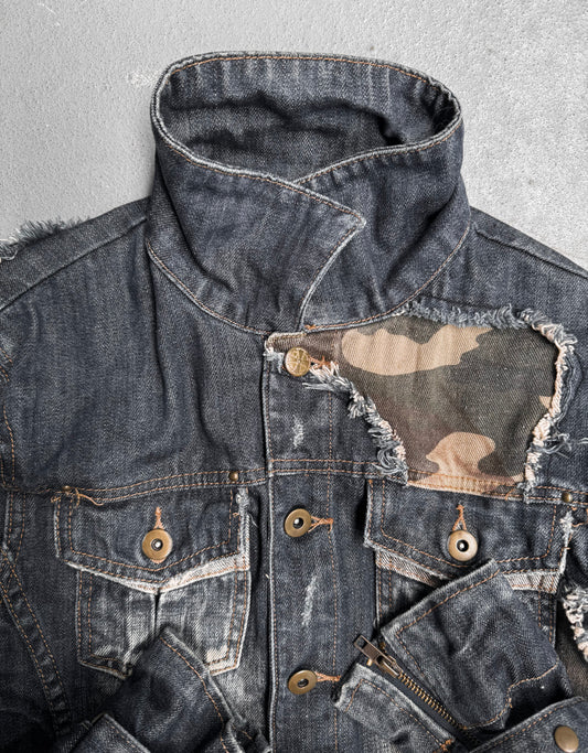 Midas Early 00s Mud-stained Camo Patchwork Denim Trucker Jacket