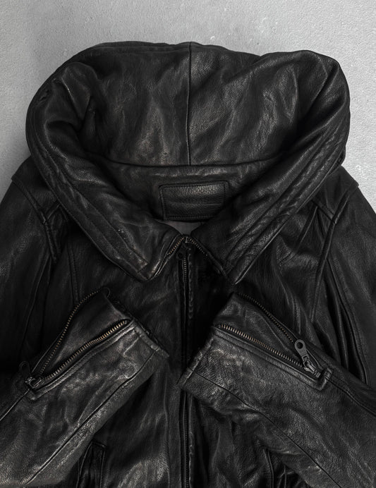 Midas Early 00s Concealed Hooded Bono Sheepskin Leather Jacket