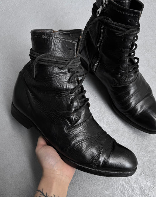 MiharaYasuhiro AW07 Garment-dyed Leather Pointed Toe Military Lace-up Boots
