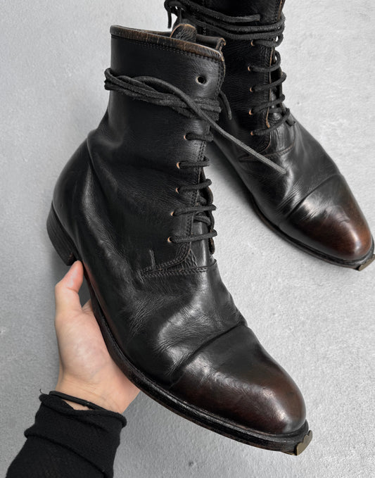 MiharaYasuhiro SS08 Distressed Leather Cap-Toe Military Heel Boots