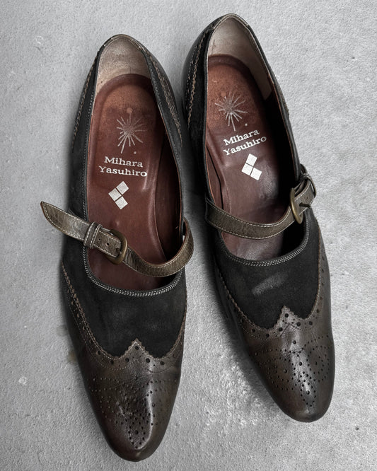 MiharaYasuhiro SS06 Suede Brogue Cut-out Buckle Strap Derbies