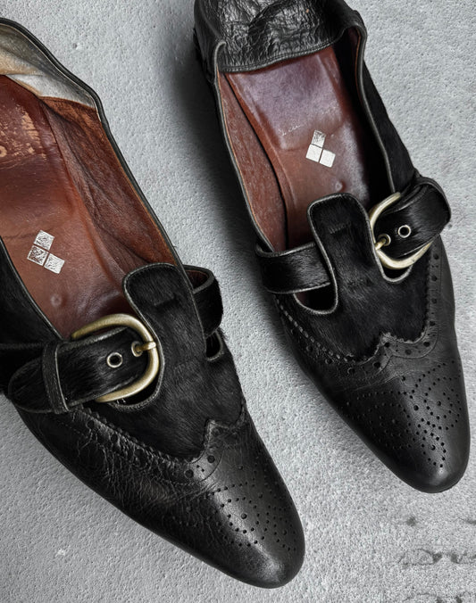 MiharaYasuhiro SS06 Pony Hair Calfskin Cut-out Slip On Derbies