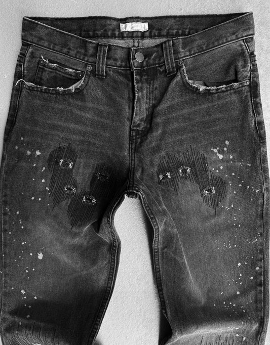 Number (N)ine AW01 “STANDARDS” Washed Grey Grunge Patchwork Denim
