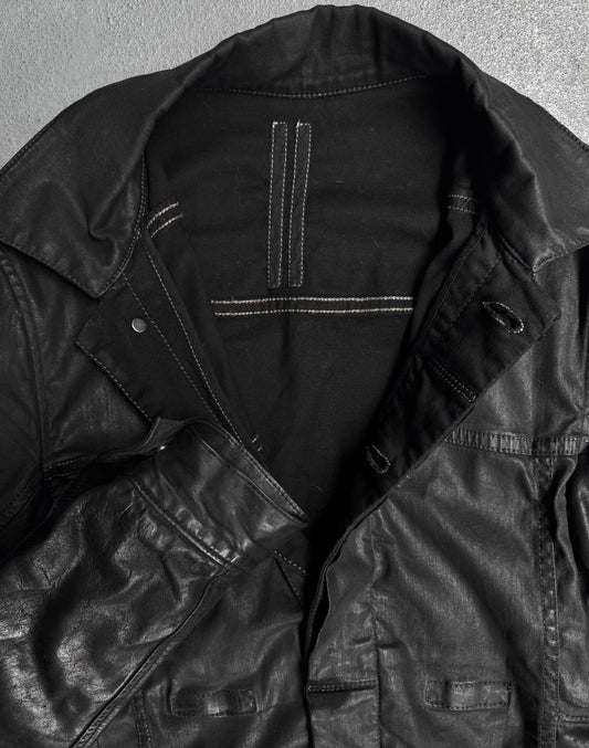 Rick Owens DRKSHDW SS12 “NASKA” Leather Sleeve Waxed Worker Jacket