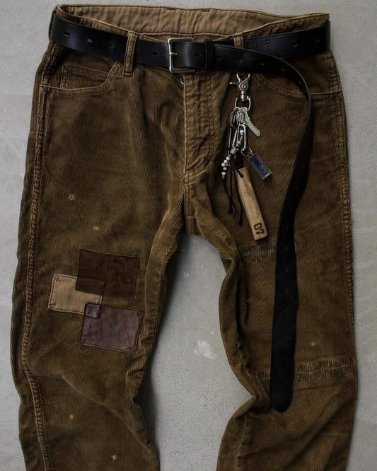 Isamu Katayama “BACKLASH” AW12 Garment-Dyed Leather Patches Bootcut Corduroy Pants