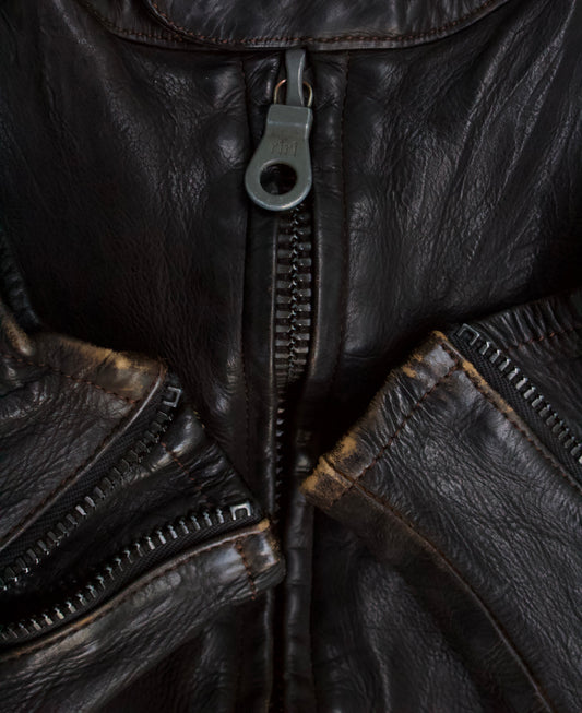 Isamu Katayama “BACKLASH” AW12 Distressed Calfskin Leather Rider Jacket