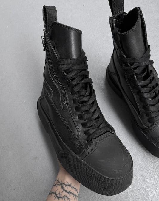Julius_7 AW22 “EREBUS;” Side-zips Platform Leather Sneakers