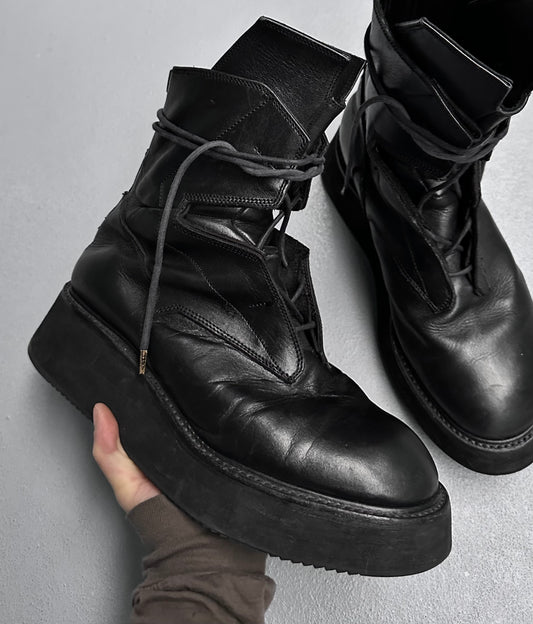 Julius_7 AW21 Black Leather “Edge” Platform Combat Boots