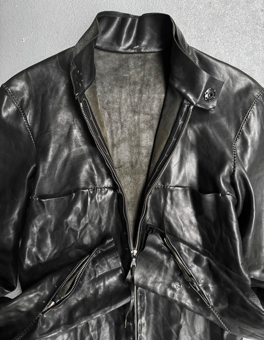 Maison Martin Margiela AW00 Black Cowhide Leather 5-zip Rider Jacket
