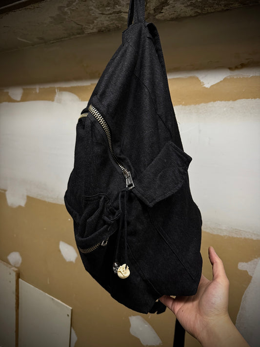 Ann Demeulemeester 2010s Skull Charm Wool Ramie Backpack