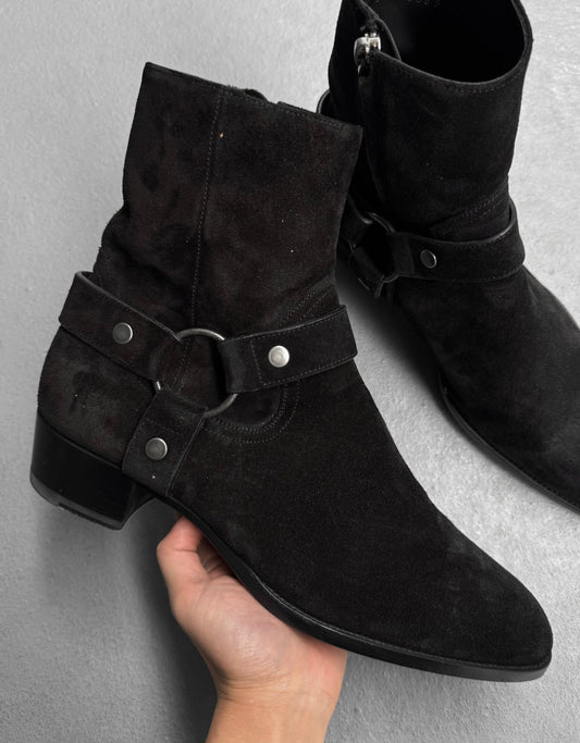 Saint Laurent Paris AW16 Black Suede Leather ‘Wyatt’ Buckle Boots