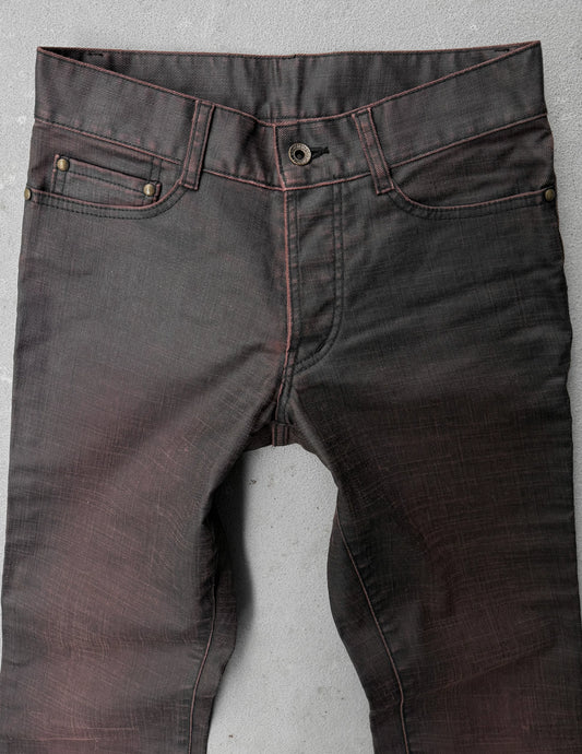 5351 Pour Les Hommes Early 00s Red Gradient Waxed Flare Denim