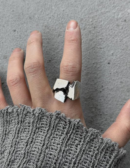 GOTHMOSMAKERS 'GM 4019' Fractured Silver Square Signet Ring