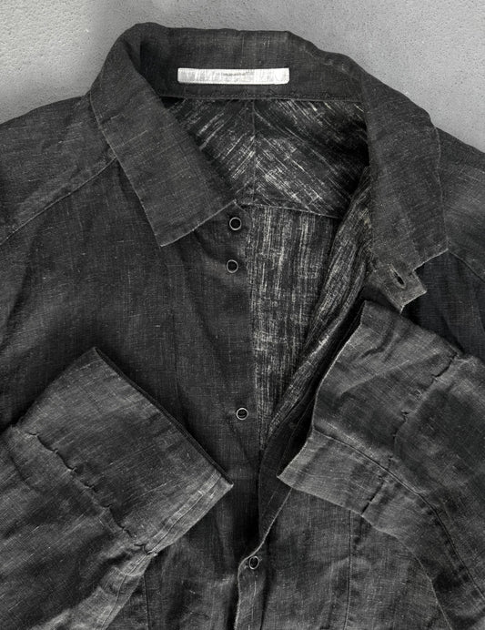 Taichi Murakami SS15 Anatomical Indigo Printed Denim Linen Shirt