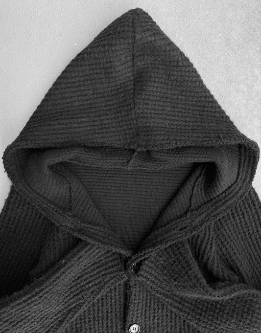 SHELLAC Early 00s Raw-Edge Drape Wool Hooded Coat