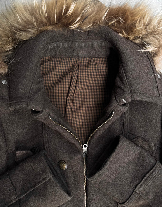 PPFM Early 00s Convertible ‘Napoleon’ Brown Fur Hooded Military Zip-up Wool Jacket