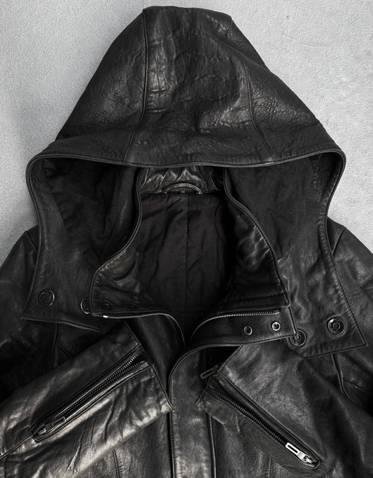 CAV-000 Early 00s Lambskin Leather Hooded Rider Jacket