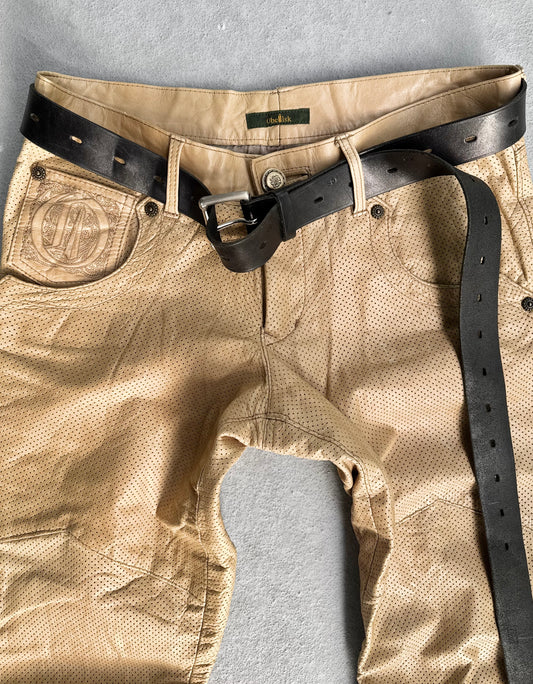 Obelisk Early 00s Perforated Cowhide Leather Bootcut Flare Pants