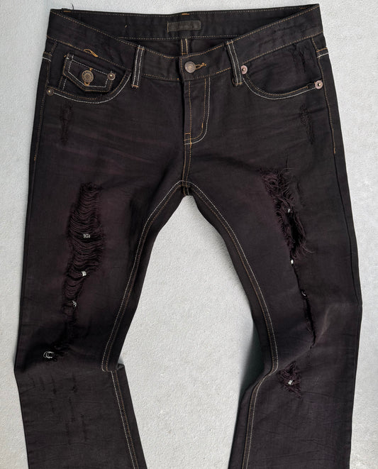 G.O.A Early 00s Garment-dyed Blown-out ‘Piercings’ Flare Denim