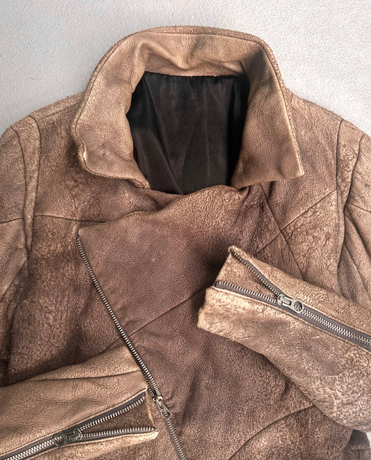 L.H.P Early 00s Distressed Sheepskin Asymmetrical Down Puffer Jacket
