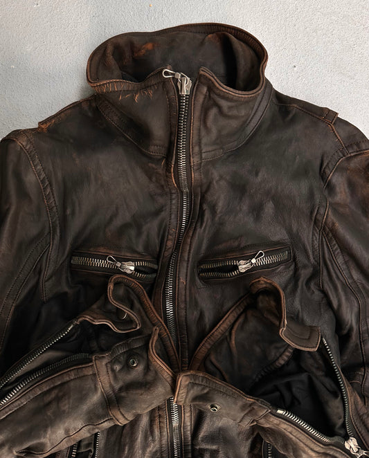 SHELLAC Early 00s Distressed Cowhide Single Rider Jacket