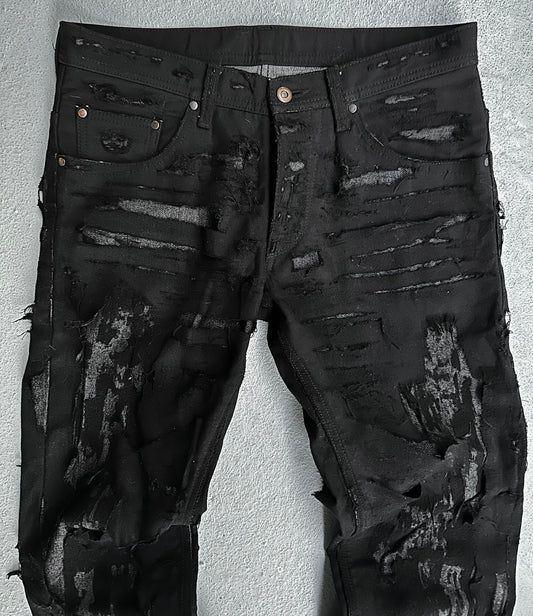 ABABHOUSE Early 00s Distressed Double-Layers Bootcut Denim