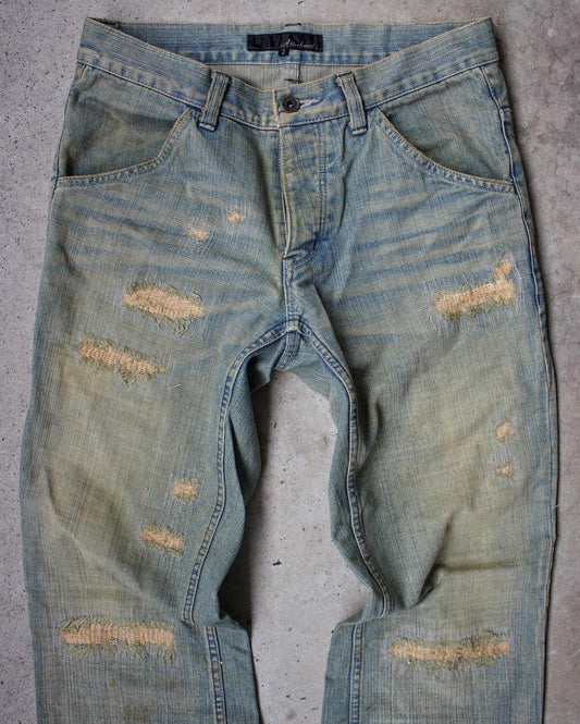 ATTACHMENT by Kazuyuki Kumagai 00s Distressed Mud-Wash Bootcut Denim