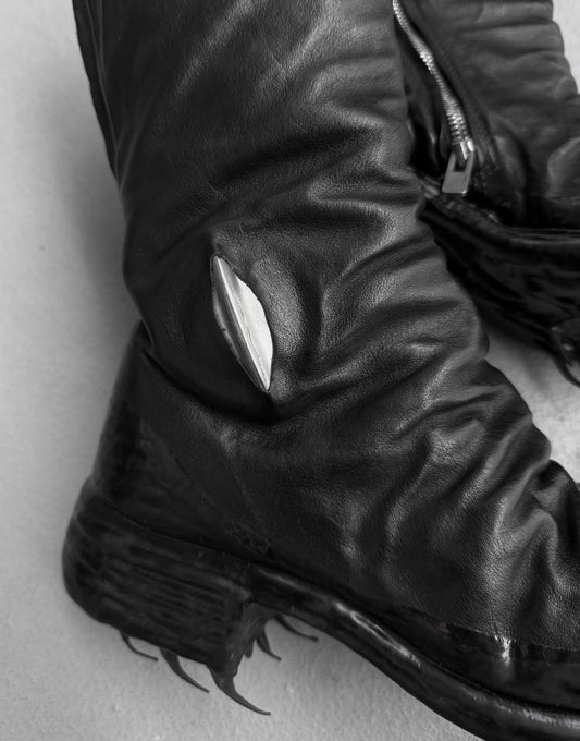 Carol Christian Poell ‘AF/0907PR ROOMS-PTC/10’ Black Objet-dyed Kangaroo Leather Titanium Prosthetic Drip Tornado Zip Boots