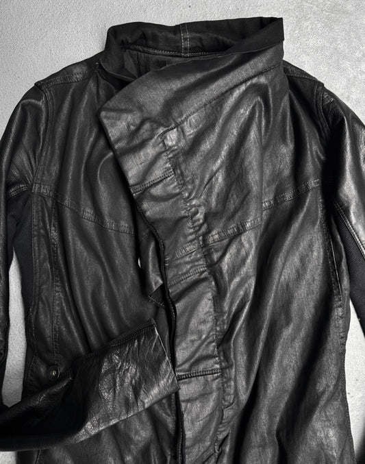 Rick Owens DRKSHDW SS14 "VICIOUS" Slave Hybrid Leather Sleeves Waxed Denim Jacket