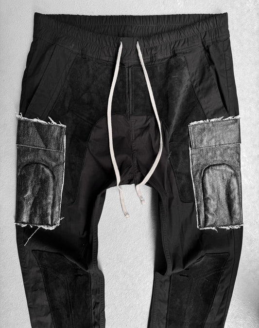 Rick Owens AW19 “LARRY” Suede Patches Waxed Cargo Pants