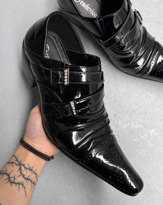 endevice Early 00s Pointy Toe Runched Leather Derbies